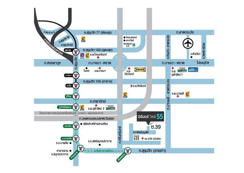ตั้งอยู่ในซอยทรัพย์บุญชัย 39 บนถนนศรีนครินทร์ทำเลที่มีความเจริญรอบด้าน ใกล้รถไฟฟ้าสายสีเขียว (สถานีศรีนครินทร์)